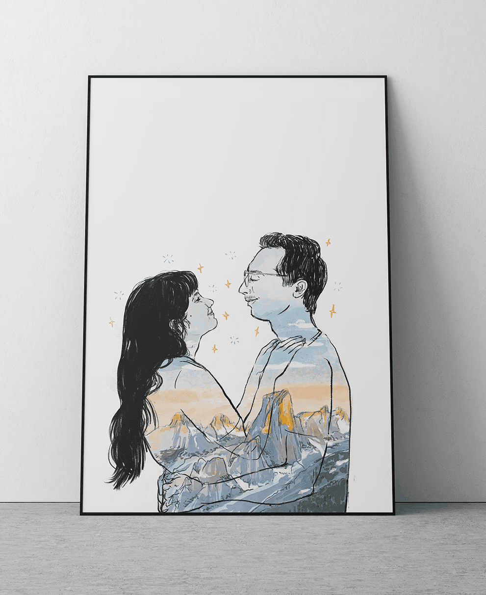 Pedro y Teresa celebran su boda muy pronto y me encargaron esta preciosa ilustración para colgarla en su casa y presentar las invitaciones de boda.