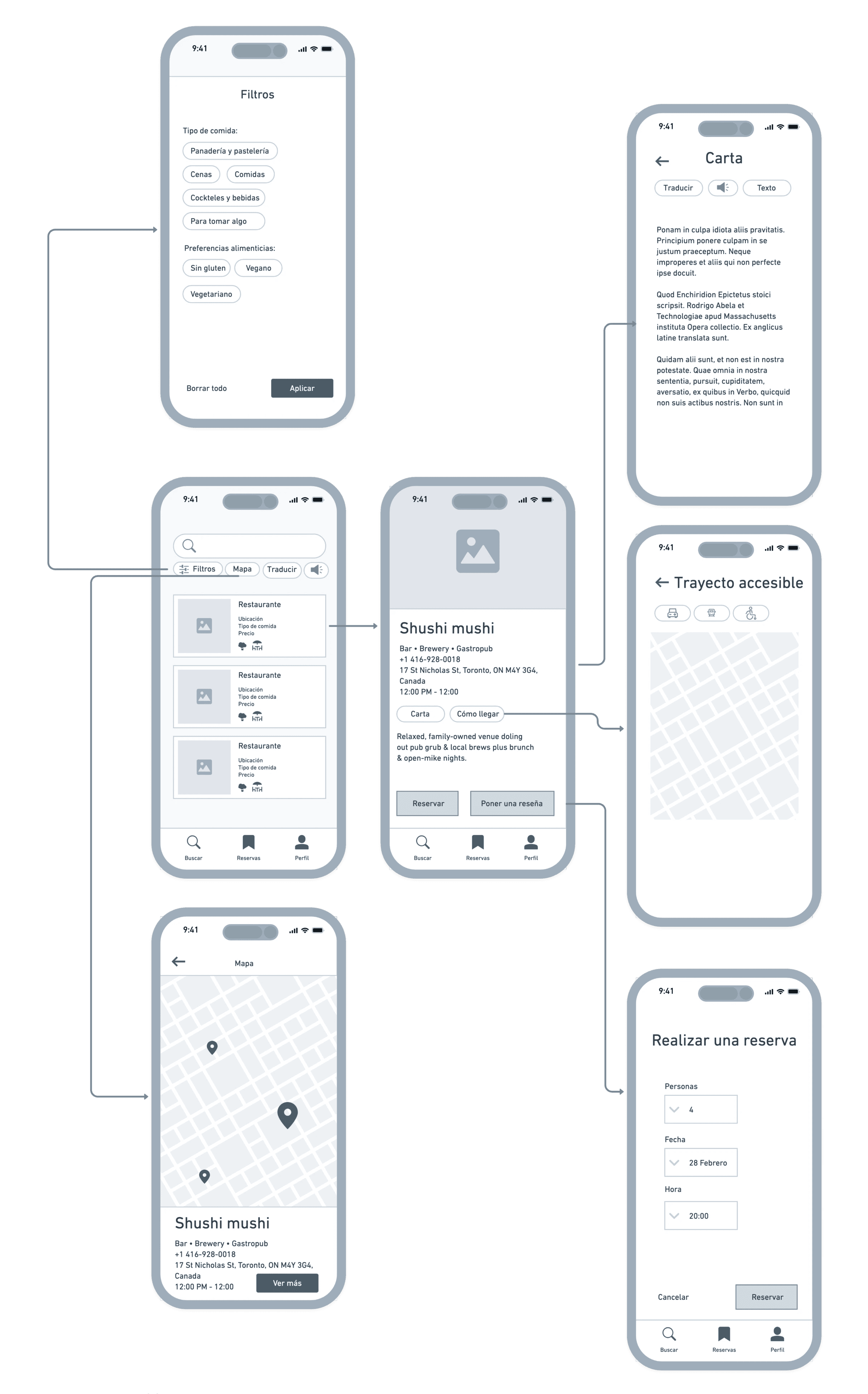 Mostrar información detallada de cada restaurante: fotografías, información, horario, ubicación, reservas y leyenda de accesibilidad.