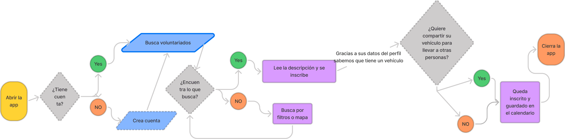 Para el desarrollo de esta aplicación, en esta primera fase nos enfocaremos exclusivamente en la versión para voluntarios. Más adelante, en la versión web o en futuras actualizaciones de la app, se implementará el perfil de "anfitrión".