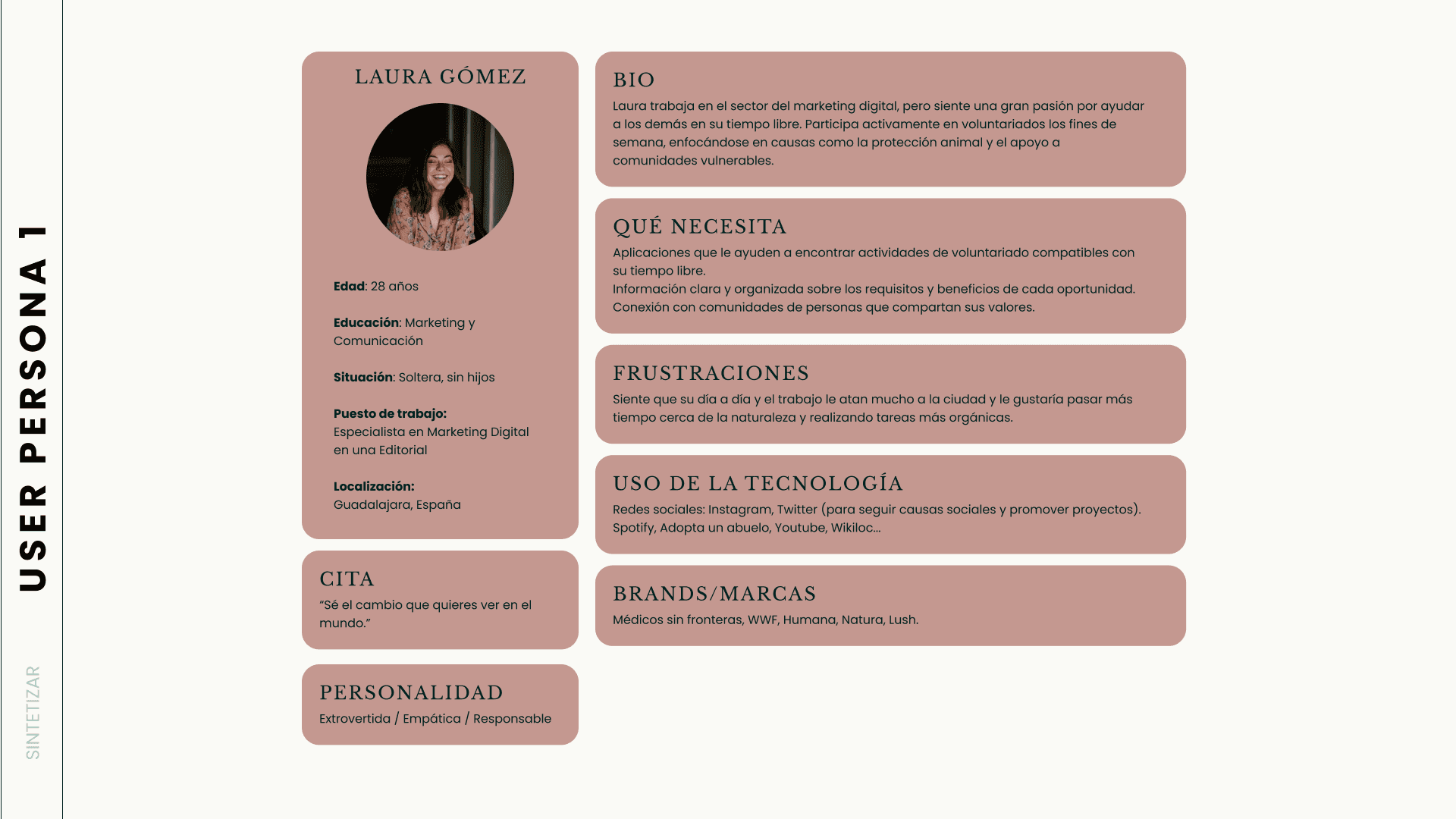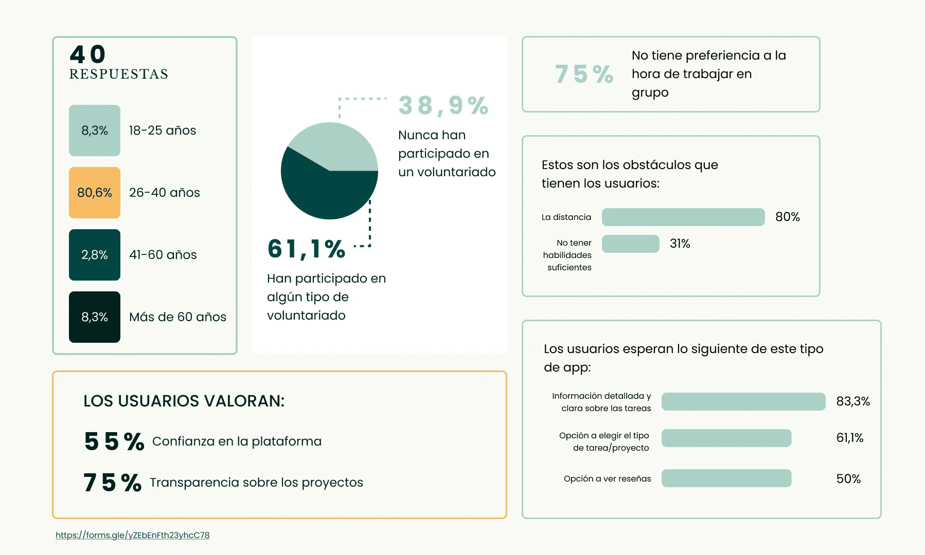 El perfil de voluntarios será neutro, sin mostrar fotos de personas reales ni género. Esta idea pretende evitar el sesgo de género y edad, además de reforzar el valor del altruismo sin necesidad de publicarlo en redes sociales. Que todo el mundo pueda colaborar y compartir.