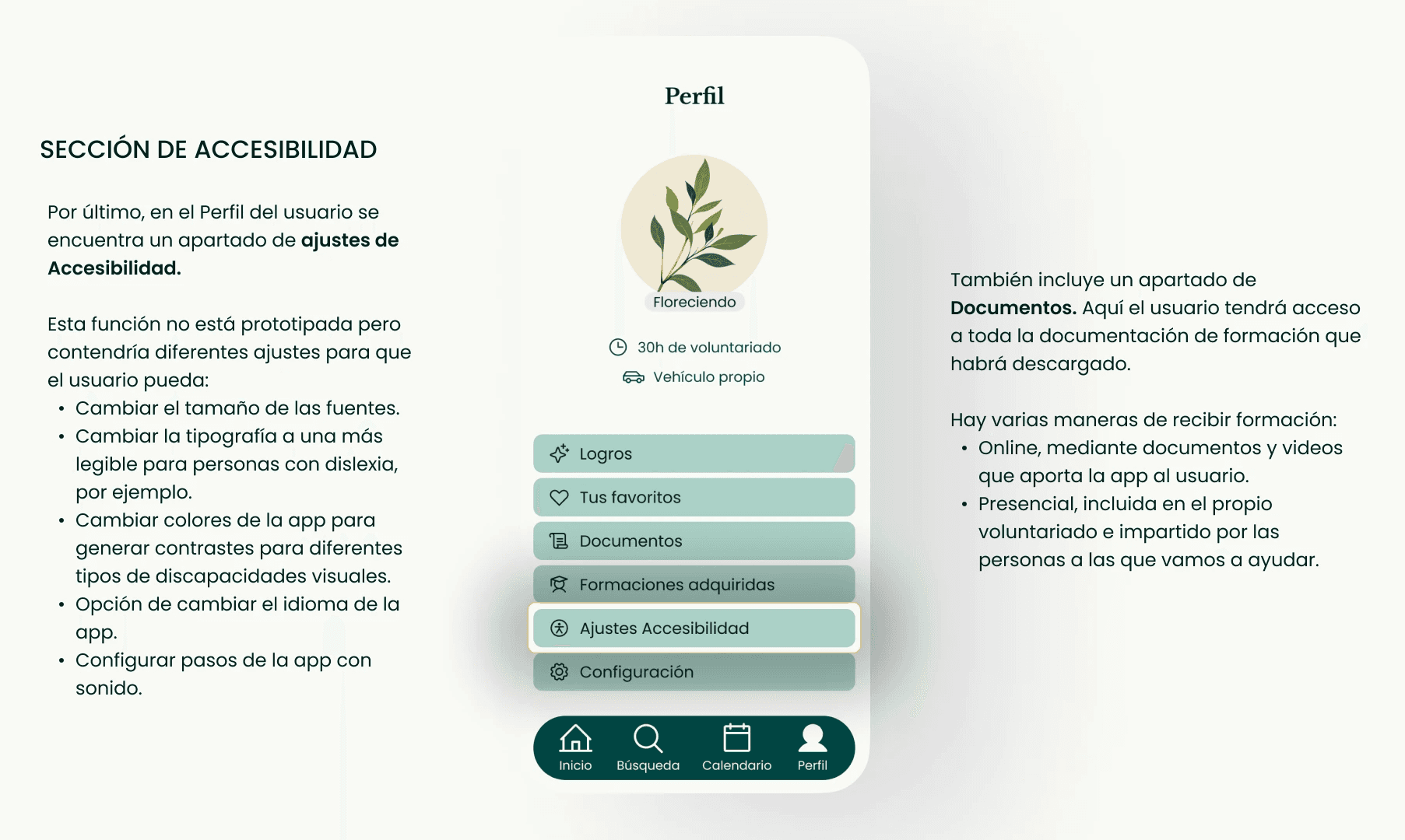 Otro aspecto clave es la integración de formaciones dentro de la app, ya sea online o presenciales, para preparar a los voluntarios antes de ciertas actividades. Por ejemplo, si el voluntariado consiste en la gestión de un huerto, podría incluir una breve formación previa sobre cultivo.